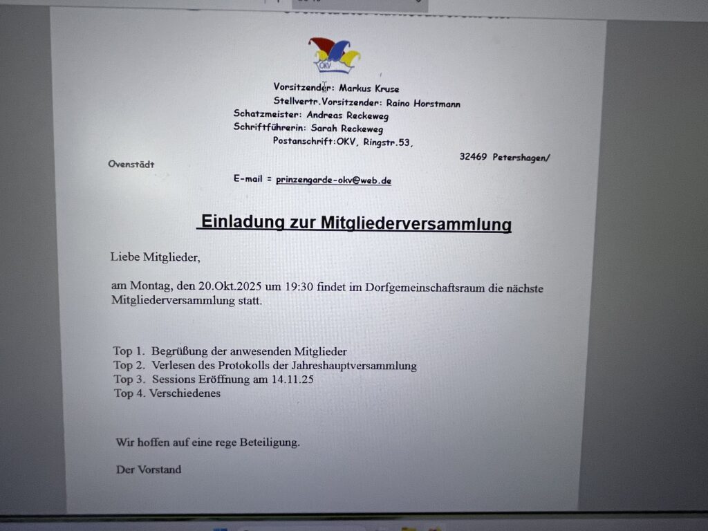 Einladung zur OKV Mitgliederversammlung am 20.Okt.2025 um 19:30 Uhr im Ovenstädter Dorfgemeinschaftsraum